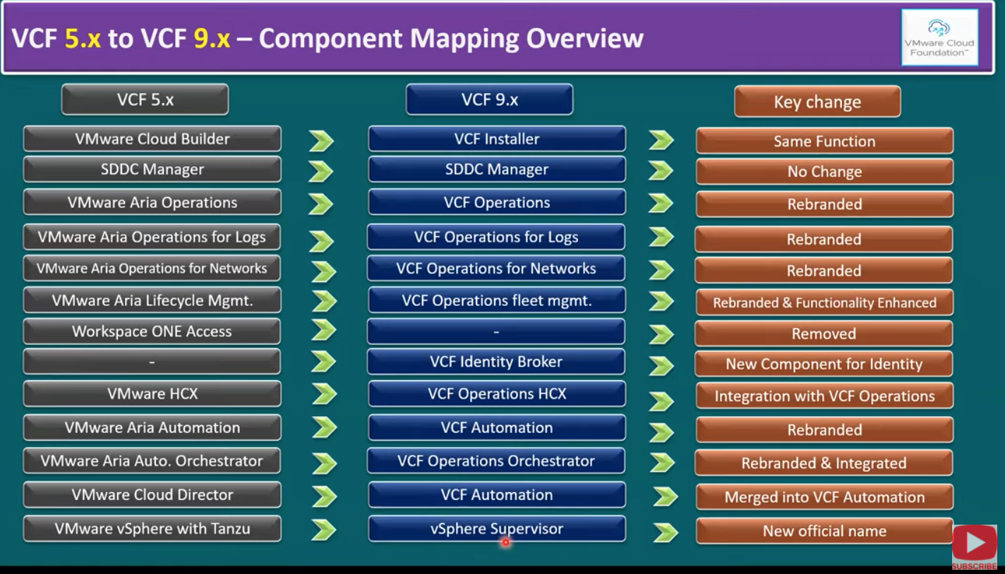 Cоответствие компонентов VCF 5.x и VCF 9