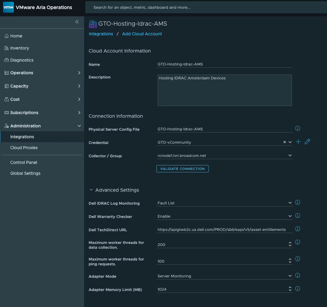 Dell TechDirect URL — URL Dell TechDirect, к которому экземпляр адаптера будет обращаться для получения информации о гарантии.