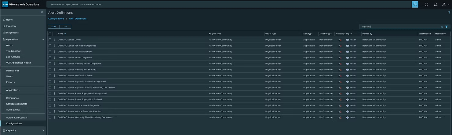 Aria-компоненты массово становятся частью семейства VCF Operations.