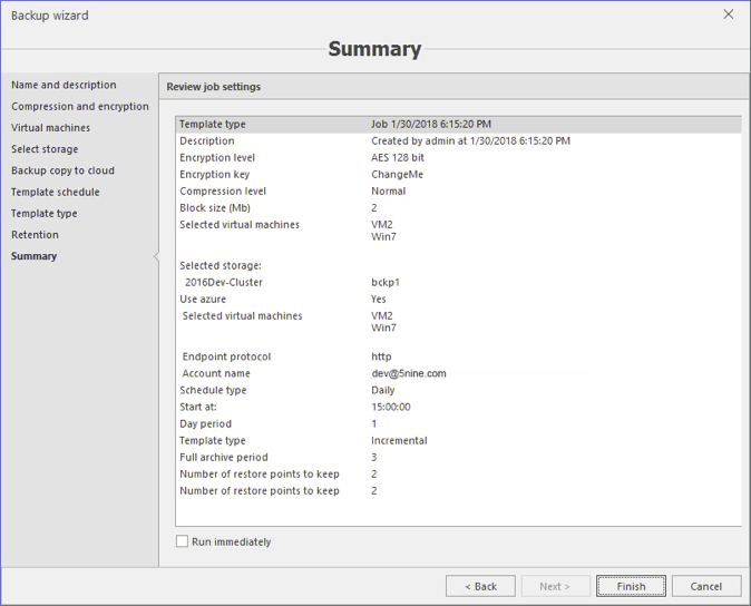 Шаг 6. Проверьте информацию о бэкапе и запустите его, нажав Finish: