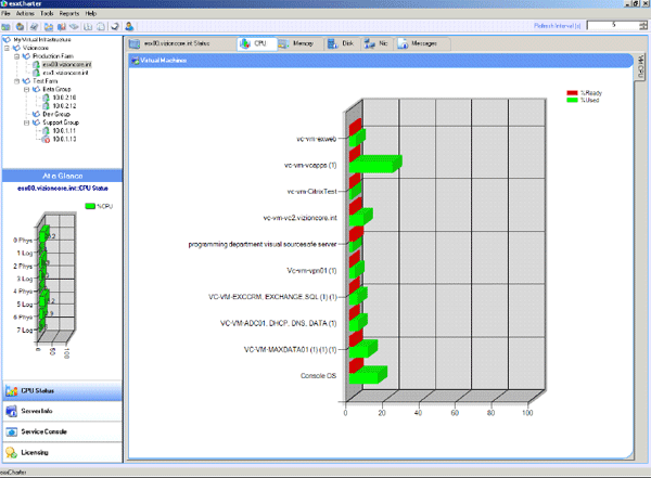 Компания Vizioncore, фактически принадлежащая Quest Software, провайдеру решений по управлению инфраструктурой Microsoft, уже сравнительно давно разрабатывает продукты для виртуальной инфраструктуры VMware и является участником программы VMware Community Source. Одним из наиболее успешных продуктов компании является продукт ESX Charter, предназначенный для сбора сведений о производительности хостов, поддерживающих виртуальные машины на платформе VMware ESX Server.