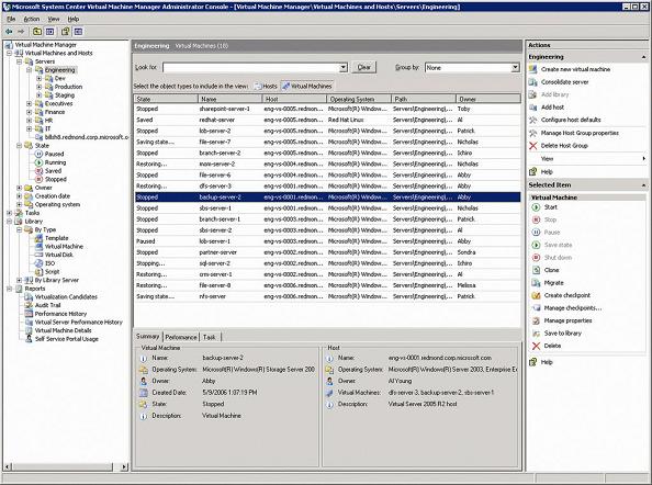 Стоит отметить также наличие мощного средства управления виртуальной инфраструктурой System Center Virtual Machine Manager, возможности которого сравнимы с возможностями VMware Virtual Center. Однако Microsoft сможет предложить еще более тесную интеграцию виртуальной инфраструктуры с другими службами для обслуживания и управления серверами организаций из семейства System Center.