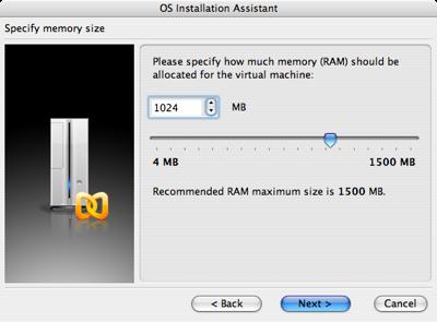 5. Далее нам необходимо выбрать количество оперативной памяти, которая будет выделена для гостевой операционной системы. Для установки Windows Vista потребуется не менее 512 Мб оперативной памяти (требование при установке), а вообще для нормального быстродействия рекомендуется не менее 1 Гб. Выбираем количество памяти, нажимаем Next: