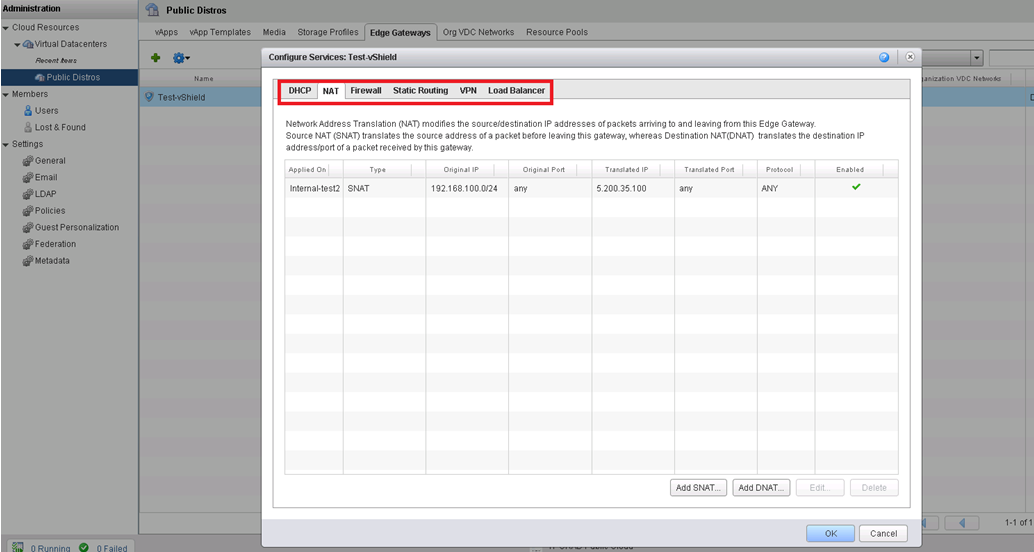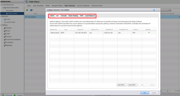 Есть у VMware продукт под названием vShield Manager. Вкратце: это обычный firewall/router, реализованный в виде виртуальной машины. Помимо всего этого – его интерфейс интегрируется с vCloud и управлять настройками (правилами, маршрутизацией, IPSec и т.п. вещами) можно прямо из облака. Чем-то напоминает случай 3. Однако теперь вы сможете добавлять правила NAT и настраивать политики firewall под себя из графического интерфейса: