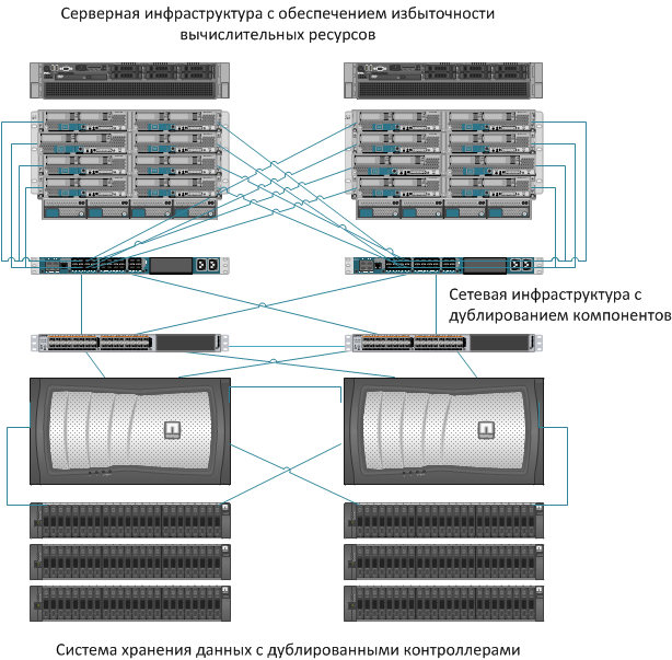 В случае с виртуальной инфраструктурой для обеспечения надежности и доступности сервиса предусмотрим наличие резервной площадки, которая расположена в альтернативном ЦОД. В случае отказа первой площадки сервис будет автоматически запускаться на второй с сохранением старой адресации. Кроме того, при наличии сезонных нагрузок компания сможет с легкостью наращивать ресурсы до необходимого количества.