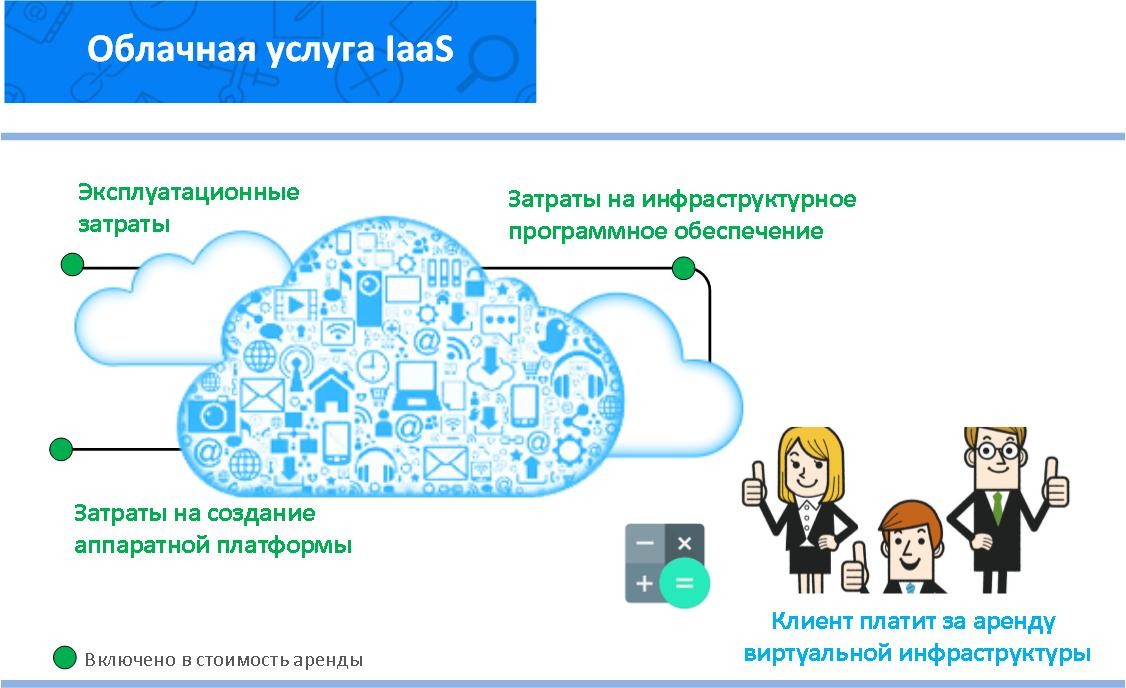 Важно! Используя облачную услугу в модели IaaS, клиент арендует выделенную виртуальную площадку. При этом капитальные затраты на приобретение оборудования и развертывание ИТ-инфраструктуры ложатся на плечи хостинг-провайдера. В рамках услуги IaaS учитываются лишь эксплуатационные затраты, которые носят регулярный характер, измеряются в денежном эквиваленте за единицу времени и включаются в стоимость аренды облачной инфраструктуры.