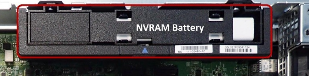 Она используется для питания NVRAM в случае аварийного отключения питания и имеет следующие характеристики: 7,2 В, 3,69 А·ч, 26,56 Вт?ч. Чтобы извлечь батарею, достаточно надавить на кнопку, подтянуть ручку и выполнить движение вверх вдоль направляющих на боковой стенке контроллера.
