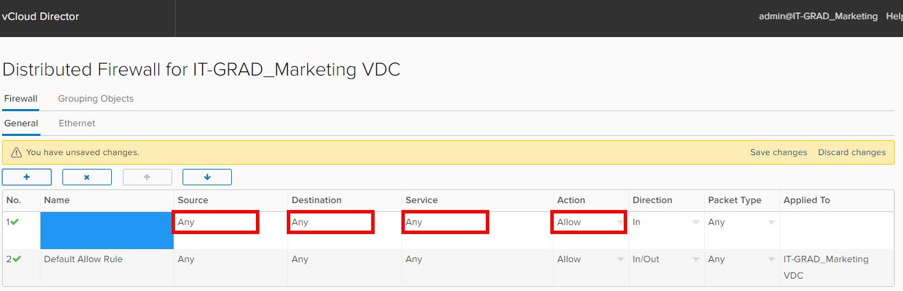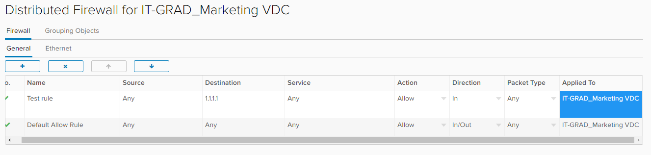 Важный момент! Правила, создаваемые в DFW, по умолчанию применяются к виртуальному ЦОД организации.