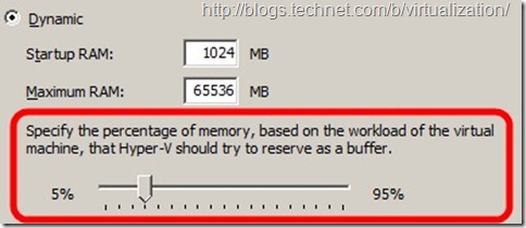 Эта настройка определяет количество памяти, которое потребуется гипервизору на обслуживание виртуальной машины в служебных целях, например, для возможностей SuperFetch. Она может быть задана в процентах от 5 до 95%. То есть, если у вас у виртуальной машины стоит 1 ГБ памяти для гостевой ОС и 20% memory buffer - то у вас будет 250 МБ по его служебные цели. По умолчанию стоит 20% - и это оптимально в большинстве случаев. Для высокопроизводительных и требовательных к быстродействию и памяти нагрузок, возможно, имеет смысл увеличить это значение. Кстати, эта настройка меняется даже у запущенной виртуальной машины, без необходимости ее остановки.