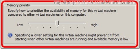 Эта настройка в Hyper-V эквивалентна, по-сути, опции Shares в VMware vSphere. Когда виртуальных машин на хосте много, и они начинают бороться за ресурсы, то нужно как-то приоритезировать выделение памяти нуждающимся виртуальным машинам. Memory priority и определяет как они будут ее распределять между собой в условиях борьбы - то есть машина с более высоким приоритетом получает память первой и в объеме пропорциональном приоритету (то есть смотрится отношение ее приоритета к сумме общих приоритетов на хосте Hyper-V).
