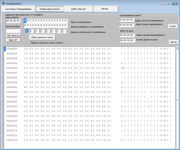 действовать как редактор оперативной памяти, редактор памяти ввода/вывода (в адресном пространстве памяти), просматривать область БИОС.