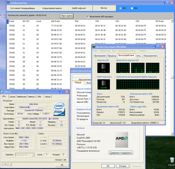 В данной версии гипердрайвера функция эмуляции команды CPUID реализована не случайно, поясню суть. На сайте IXBT.COM появилась статья "VIA Nano как инструмент для исследователя: дают ли эффект нечестные методы конкурентной борьбы?", где была попытка разобраться с моделезависимостью программных продуктов. Авторы использовали не лучший тестовый инструмент, и поскольку тема моделезависимости для меня тоже актуальна, то возникло желание поучаствовать в этом процессе и помочь инструментарием в дальнейших изысканиях, благо возможность такая у меня есть.