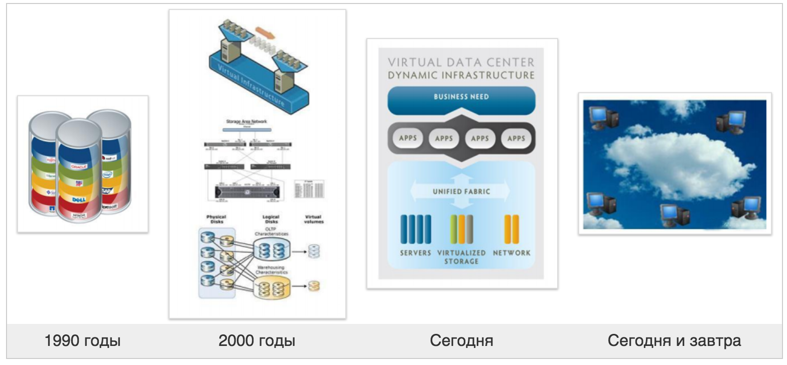 До того как использовать облачный виртуальный ЦОД, с которым мы привыкли работать сегодня, прошло немало времени. Так в 1990 г. были популярными физические ЦОД, но, начиная с 2000 гг., ситуация в корне изменилась. На смену чистой «физике» пришли облачные технологии, и заказчики на базе физического ЦОД стали строить собственную виртуальную инфраструктуру. Однако с появлением виртуализированных динамических ЦОД клиенты ощутили гораздо большую гибкость. Согласно полученной статистике можно смело утверждать, что виртуальные ЦОД и облачные технологии в целом будут только развиваться.