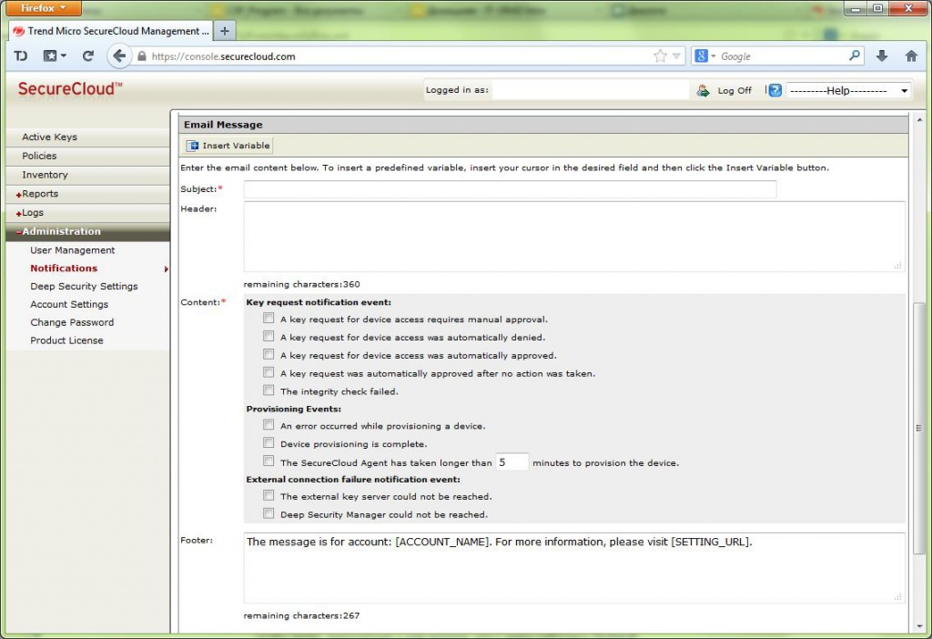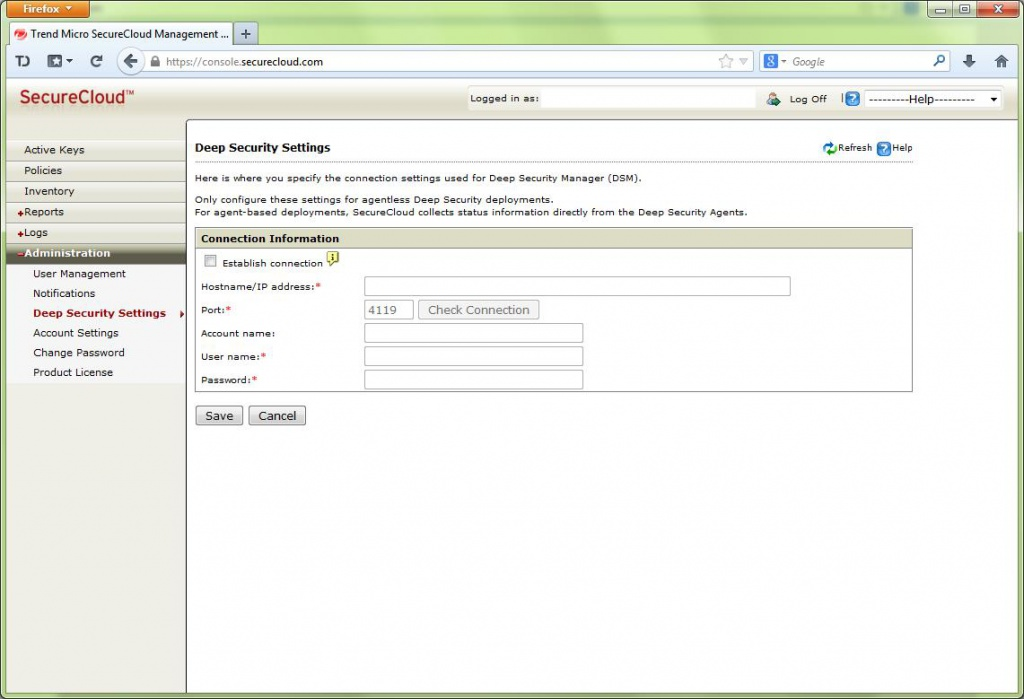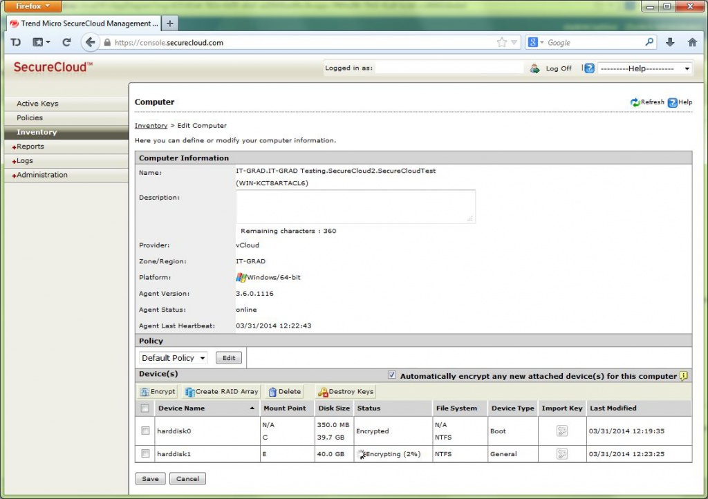 Архитектурно решение состоит из системы управления, предоставляемой как сервис с доступом через консоль управления и агентов, установленных на защищаемых виртуальных машинах. Консоль управления SecureCloud доступна по web по адресу console.securecloud.com и выглядит типично для большинства web консолей, а агент доступен для загрузки с сайта компании trendmicro.