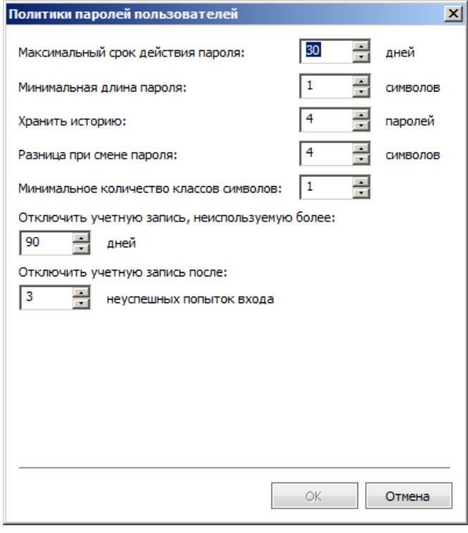 Срок действия пароля неограничен - отметьте это поле для настройки неограниченного срока действия пароля. Если поле не отмечено, то по истечении заданного в политиках срока действия пароля пользователю будет предложено сменить пароль.