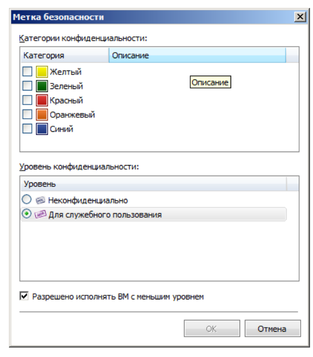 метку безопасности. Далее нажмите кнопку-ссылку "Назначить метку". На экране появится следующий диалог: