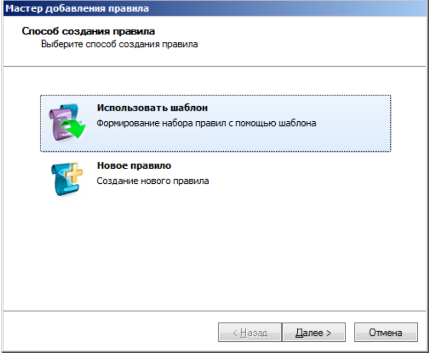 3. Для создания правила нажмите кнопку-ссылку "Создать правило". На экране появится диалог мастера создания правила.