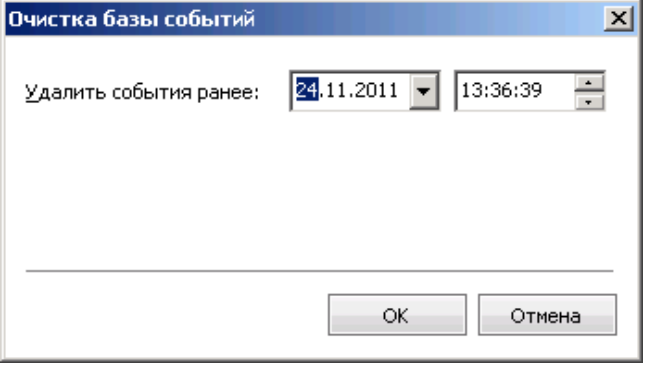 Укажите дату и время и нажмите кнопку "ОК". Записи о событиях, зафиксированных ранее указанной даты, будут удалены из журнала.