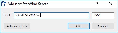 Указываем адрес первого узла StarWind, после чего нажимаем Advanced: