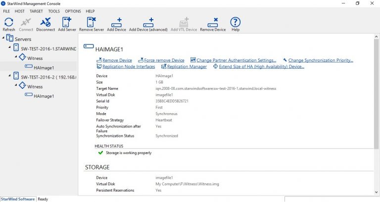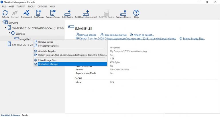 После нажатия кнопки Create Replica новое устройство должно появиться в консоли StarWind: