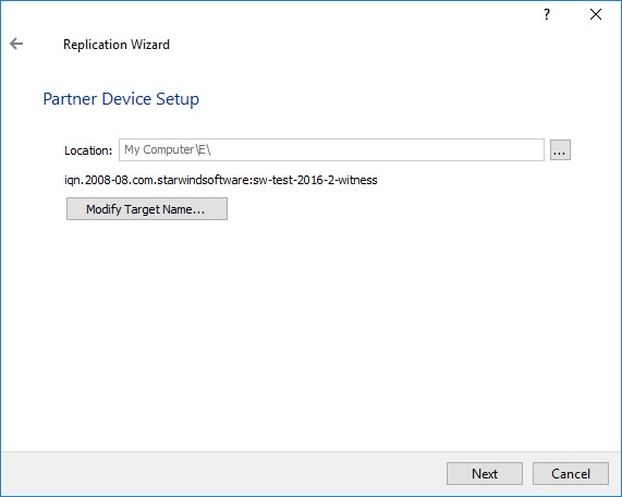 Далее таким же точно образом настраиваем подключение на первом узле Hyper-V ко второму узлу StarWind (Partner HA Device):