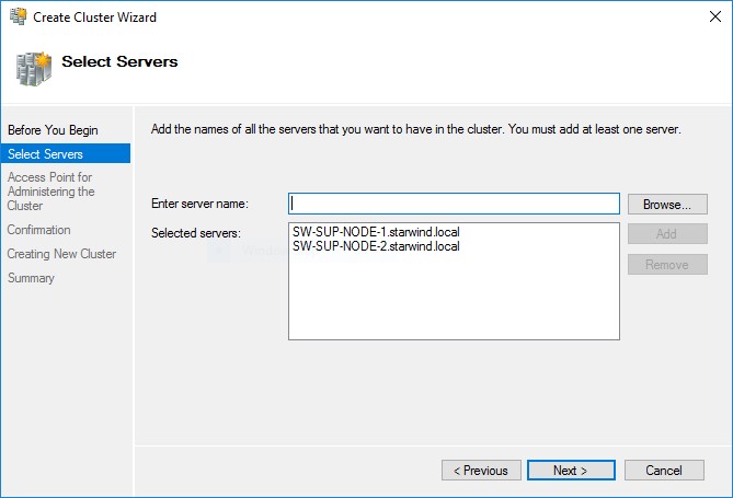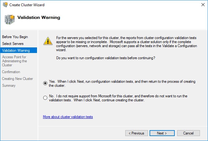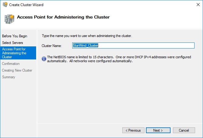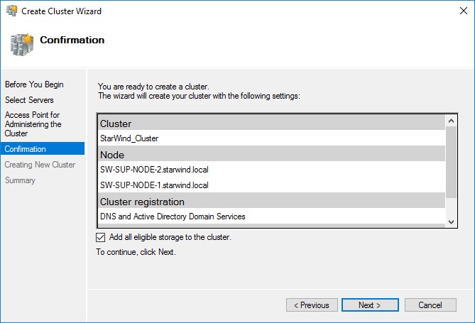 И запускаем процесс создания Failover Cluster: