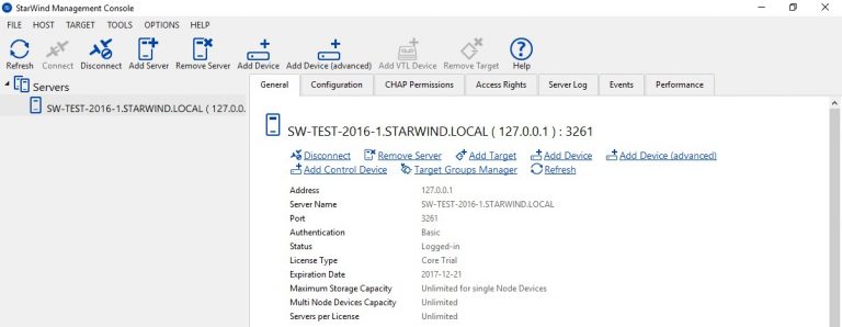 StarWind Management Console - это графическая консоль, позволяющая выполнять все операции с хранилищами.