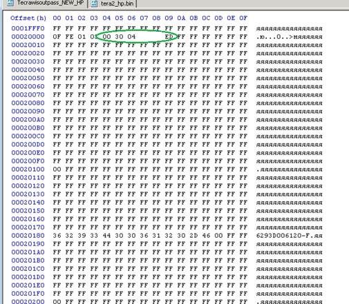 Теперь открываем снятый дамп любым HEX-редактором и находим строку 00020000 это и есть MAC и меняем его на тот который мы посмотрели на заблокированном нулевом клиенте (на самом деле можно заменить на любой). На строке 00020100 начинается уникальный идентификатор устройства, его тоже лучше поменять (если там 00, то идентификатором будет просто MAC). Если этого не сделать, то у всех устройств, на которые мы зальем этот дамп, получится одинаковый MAC-адрес и идентификатор.