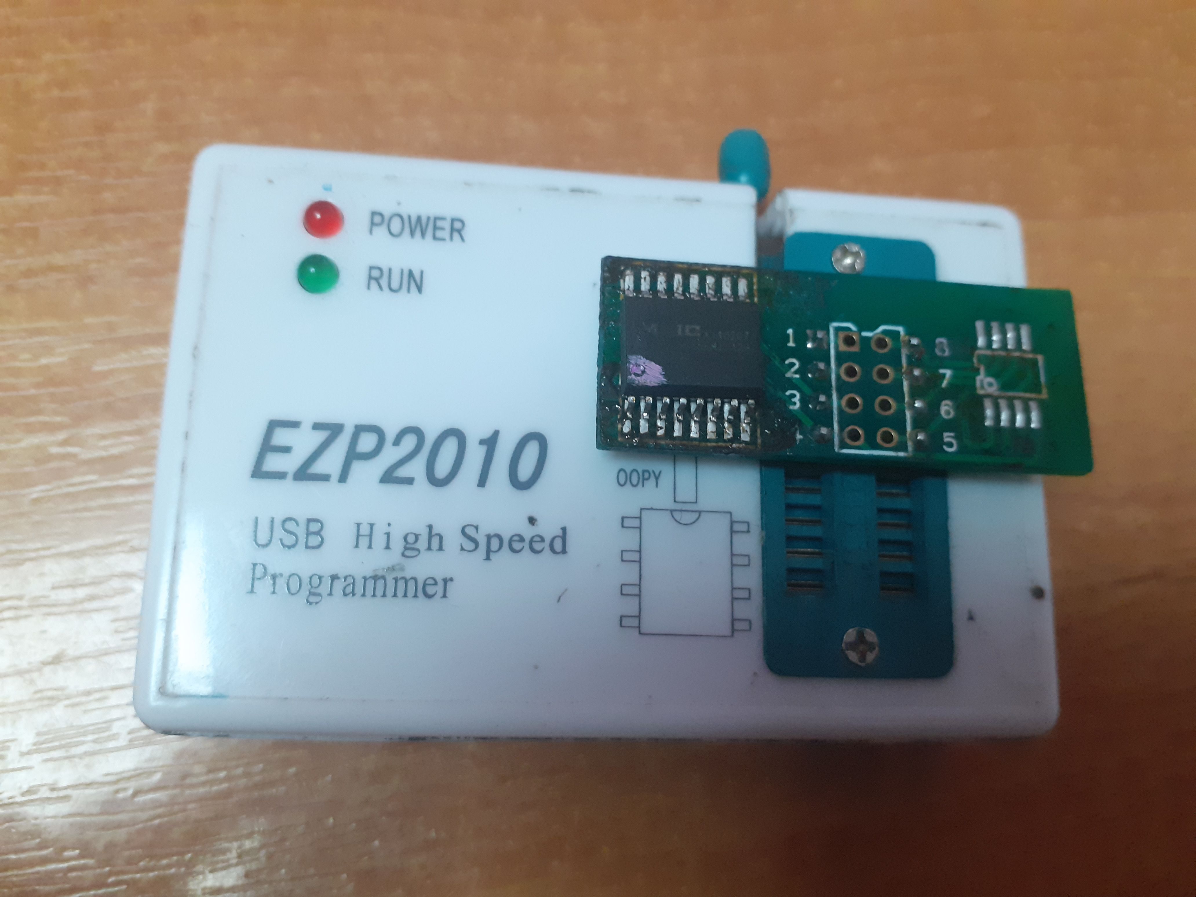 Далее разбираем заблокированный нулевой клиент, точно так же снимаем чип памяти и скармливаем его программатору.