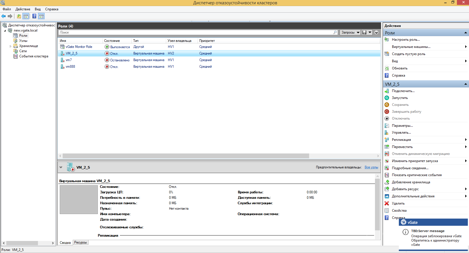 9. Контроль управления Microsoft Hyper-V через Failover Cluster Manager