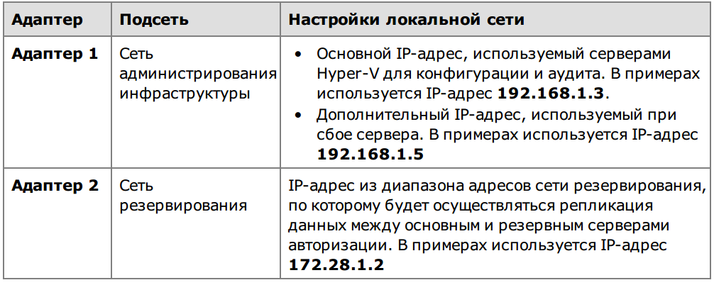 При отсутствии отдельного адаптера для сети резервирования (адаптер 2) можно присоединить IP-адрес для резервирования (172.28.1.2) к адаптеру 1 (сеть администрирования инфраструктуры) в качестве дополнительного адреса.