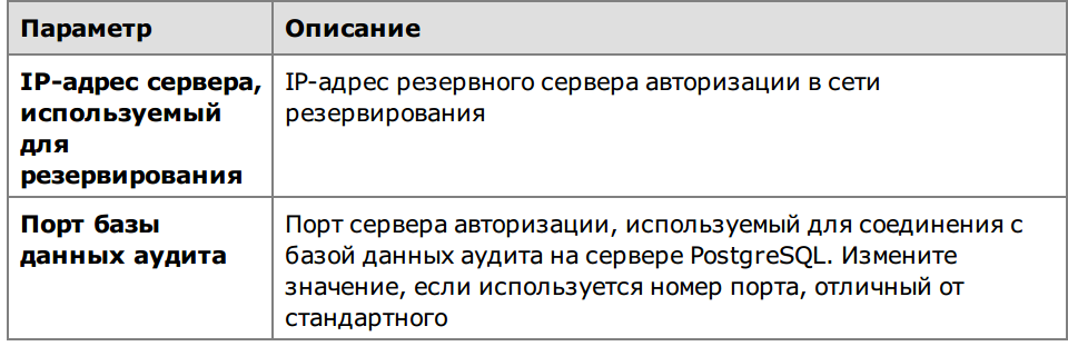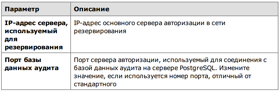 Укажите параметры репликации для резервного сервера авторизации, используя следующие параметры: