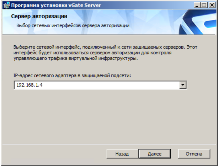 Затем укажите IP-адрес адаптера 1 сервера авторизации, через который будут проходить маршруты в защищаемый периметр и из него: