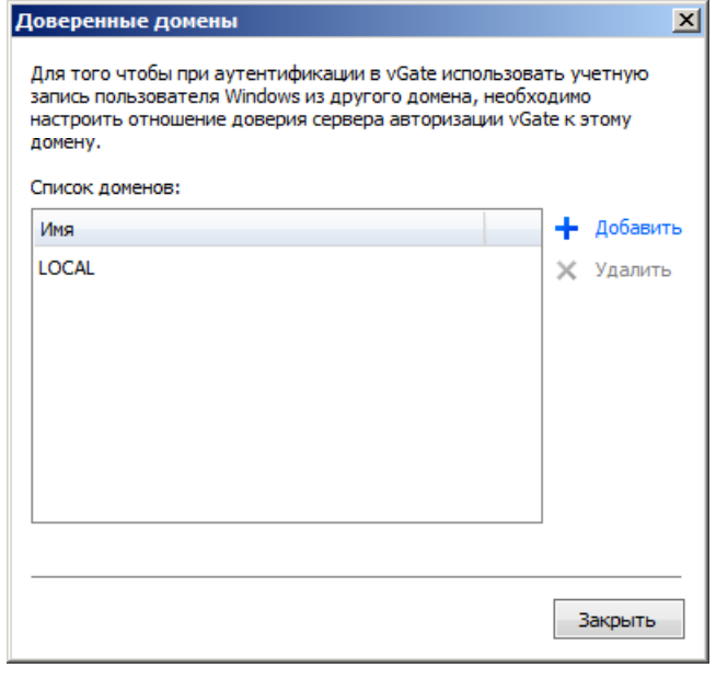 Для этого уже после установки vGate откройте группу параметров "Дополнительные настройки". В области параметров нажмите кнопку-ссылку "Настроить" рядом с заголовком "Доверенные домены".