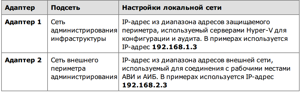На всех рабочих местах администраторов Hyper-V в качестве шлюза по умолчанию следует указать IP-адрес внешнего сетевого адаптера сервера авторизации.
