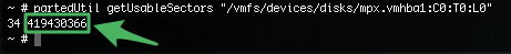 5. Теперь нужно узнать номер конечного сектора, который доступен для использования - это и будет точка, до которой нам нужно VMFS расширять. Для этого выполняем команду: