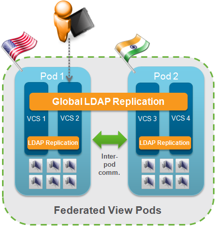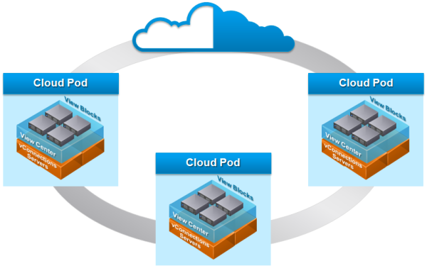 Архитектура Cloud Pod с возможностью глобального назначения прав доступа и федерации между различными сайтами VMware View, управляемыми централизованно.