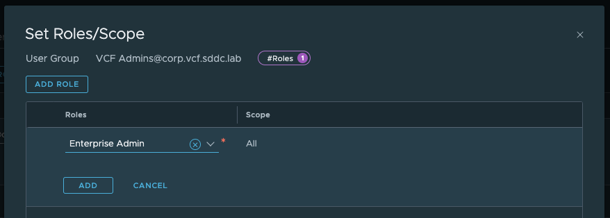 Это разовое действие: к примеру, вы можете назначить группе администраторов из AD роль CloudAdmin в VCF Operations, роль Administrator в каждом vCenter, и соответствующую роль Enterprise Admin в NSX Manager. После этого члены данной группы смогут входить через единый SSO и получать административный доступ ко всем компонентам без использования локальных учётных записей.