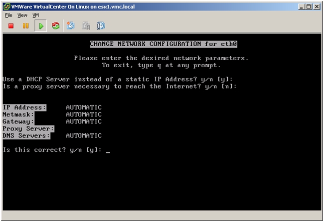 3. Далее запускаем vCenter Linux и устанавливаем настройки сети – статический IP или от DHCP: