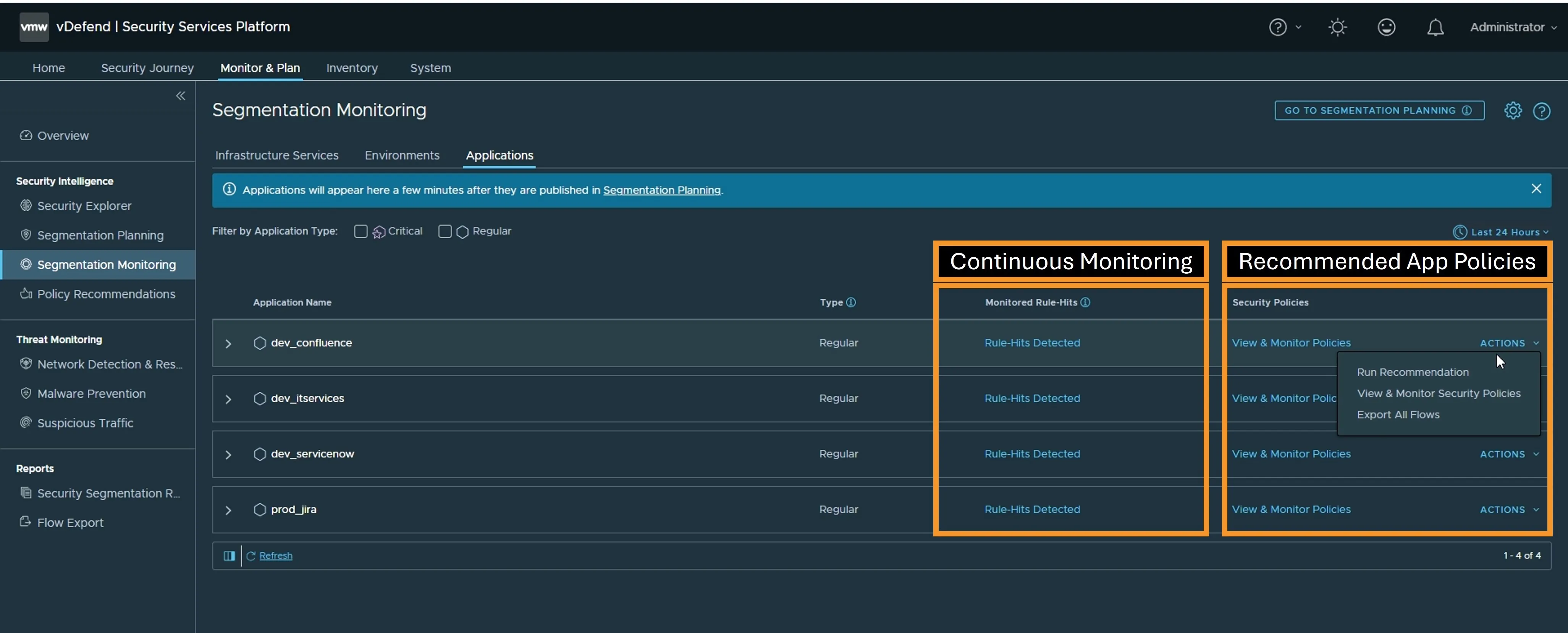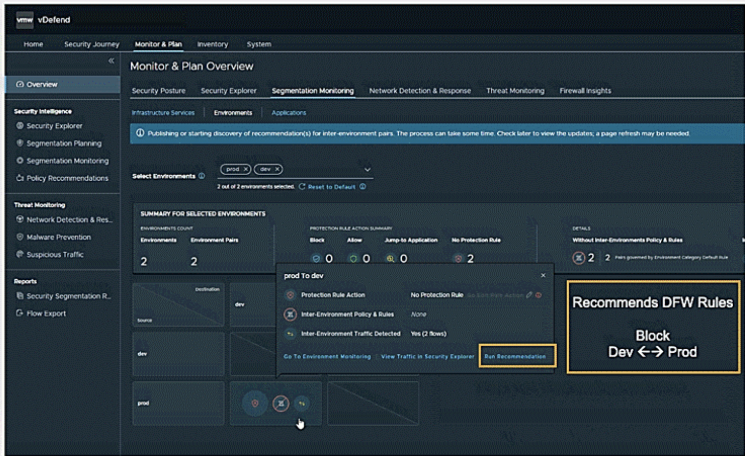 Продукт VMware vDefend специально создан для автоматического обнаружения коммуникаций приложений, предоставления рекомендаций по правилам безопасности и проверки корректности политик без вмешательства в работу системы. Результат — сегментация на 360 градусов с встроенными автоматизированными рабочими процессами, включающими макро- и микросегментацию и непрерывный мониторинг — всё в предписывающем формате.