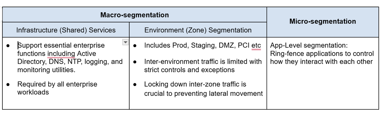 Определение микросегментации внутри каждого приложения по уровням (web-фронтенд, сервер приложений, база данных).