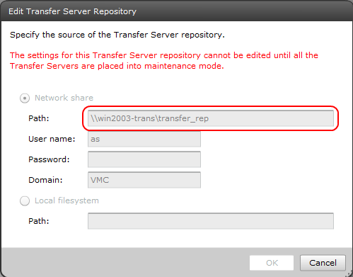 Здесь нужно указать параметры сетевой папки, которую мы создали на сервере Transfer Server.