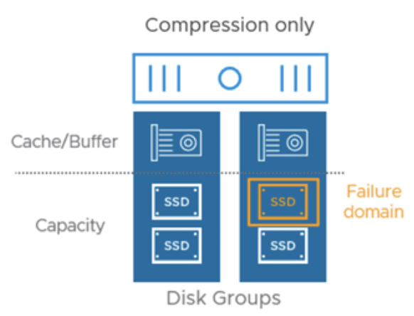 Начиная с vSAN 7 Update 1, была введена возможность включать только сжатие данных без дедупликации в традиционной архитектуре. Такой режим призван дать некоторую экономию места там, где дедупликация малоэффективна или нежелательна. Compression onlyтакже доступно только на all-flash кластерах и так же включается на уровне всего кластера (через меню Services vSAN). При его активации vSAN пропускает шаг хэширования/сравнения блоков, выполняя лишь компрессию 4 KB блоков при сбросе на емкостной уровень. В остальном механизм идентичен описанному выше: блок сжимается, если уменьшился как минимум вдвое; если нет – сохраняется в исходном размере.