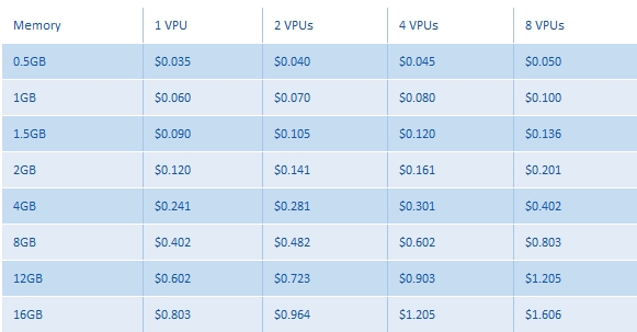 Для примера зайдем на портал заказа новой виртуальной машины компании Terremark и посмотрим на процесс ее создания. Для начала ценники: