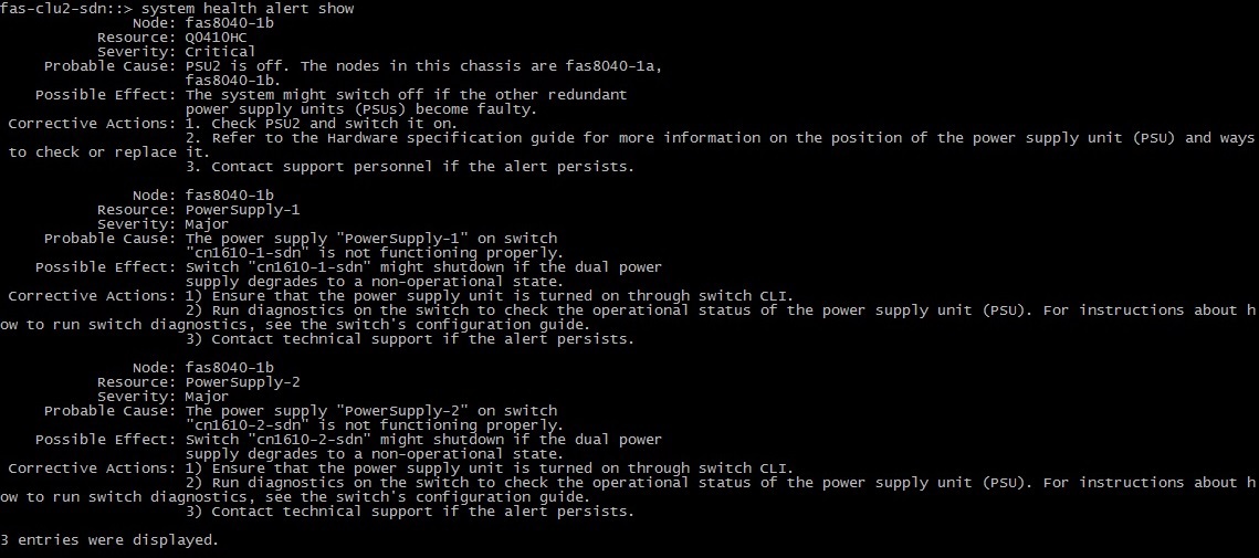 Наблюдали успешный автоматический takeover одной «головы» (затем и второй). Тома от первого контроллера успешно перешли на обслуживание второго, примечательно, что сама процедура заняла какие-то десятки секунд (включая обнаружение отказа «головы»). На нодах выставлены показатели: options cf.takeover.detection.seconds 15