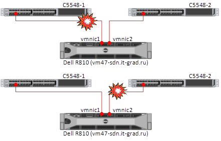 2. Поочередное отключение сетевых линков от ESXi (Dell r620/r810)