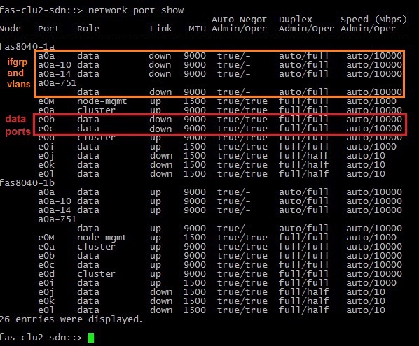 Были загашены, соответственно: e0b и e0c интерфейсы контроллера, за ними перешли в состояние «down» ifgrp a0a и поднятые на ней VLANs. После чего нода ушла в обыкновенный тейковер, о нем мы знаем из первого теста.
