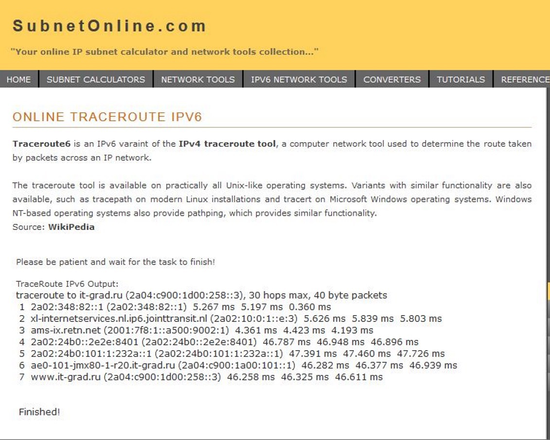 А вот трейс из интернета до нашего сайта по IPv6: