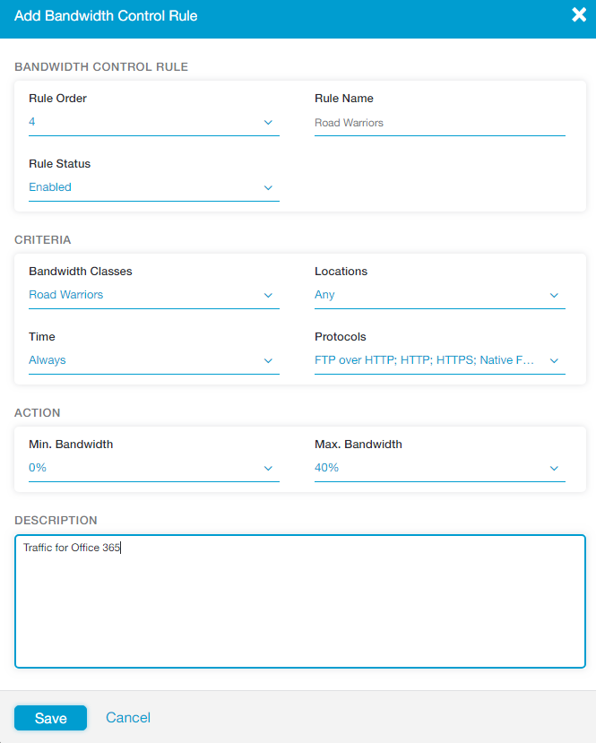 Управление полосой пропускания (политика управления полосой пропускания и приоритезации бизнес-критичного трафика над остальным трафиком). Управление полосой пропускания доступно для редакций Business и Transformation.