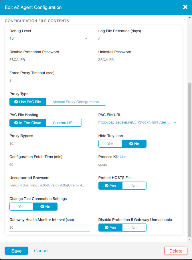 Если в вашей организации используются сценарии BYOD (bring your own device), то для централизованной автоматической установки Z-App можно использовать систему управления мобильными устройствами (MDM) от наиболее популярных вендоров. Еще один метод настройки Zscaler, имеющий свои преимущества – это указать в настройках браузера PAC-файл.